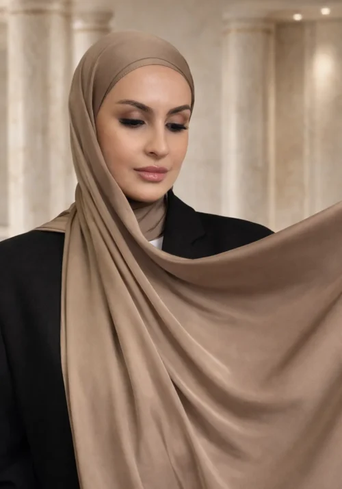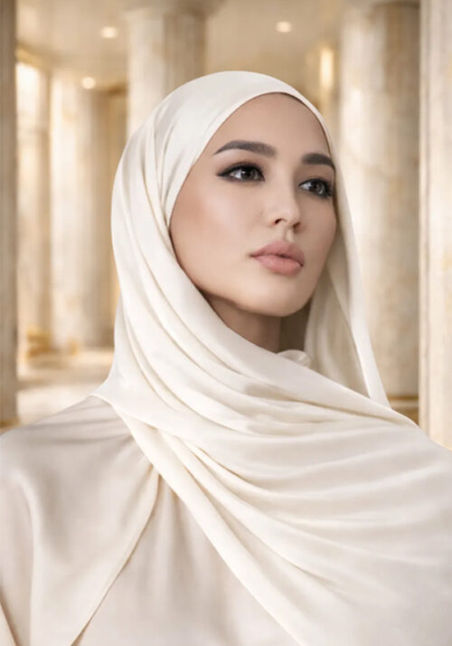 The Diva Scarf is crafted from high-quality Italian silk fabric and designed as a 2-in-1 instant hijab with an attached undercap for luxury, elegant wear. Ready to wear, it drapes smoothly and creates a refined face frame without complex styling.