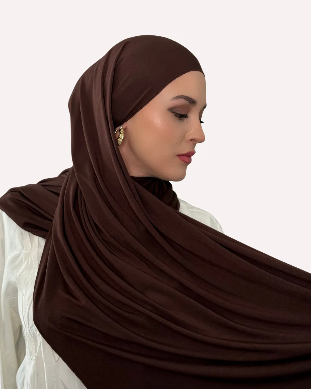 Crafted from a lightweight bamboo jersey, our collection offers breathable softness and everyday versatility. It wraps easily around the head, stays in place without slipping, and pairs beautifully with or without a bonnet. Reinforced seams preserve its smooth structure and prevent stretching, ensuring it looks refined even after repeated washes. Effortless in design yet elevated in feel, it is the essential piece for modest, timeless style.